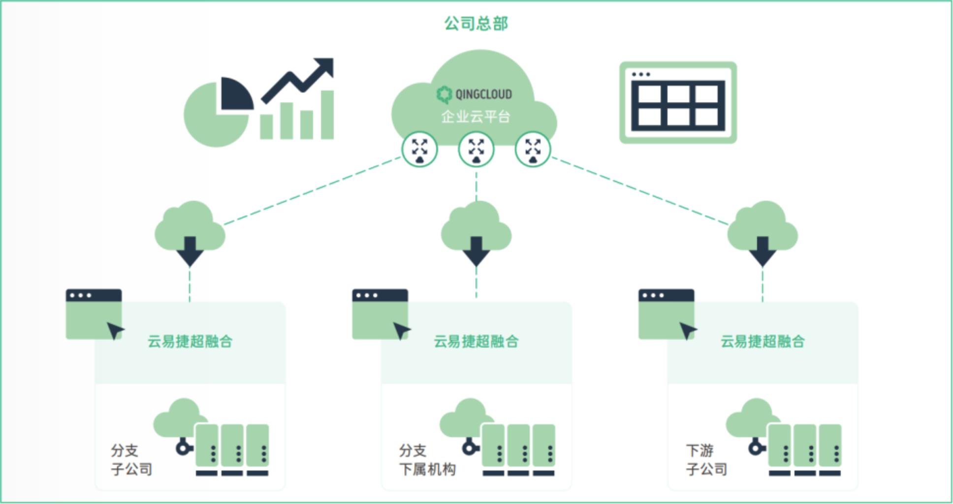 集中管控与可视: 通过与青云企业云平台的集成,实现对全部分支机构云易捷超融合软件 环境的集中监控、统一管理和标准化运维 ,大幅提升总部对分支机构 IT 资源的全局掌控力与合规管理能力。